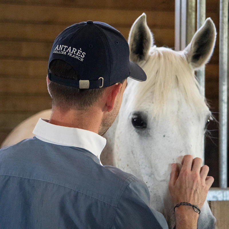 This cap is embroider with Antarès horse silhouette on the left side face and visor, and with the Antarès Sellier France brand on the back. The incurved visor allows better protection and maximum comfort.