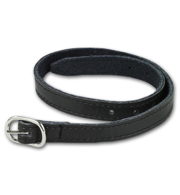 Pair of black leather spur straps with pre-punched holes. These leather Spur Straps are a quality choice for pairing with your spurs, to keep them in place on your boots. Adult size (18″)