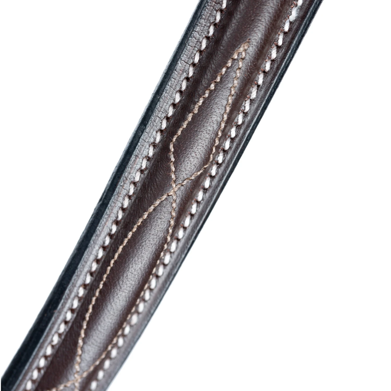 A beautiful rich chocolate brown colored martingale with fancy stitching.