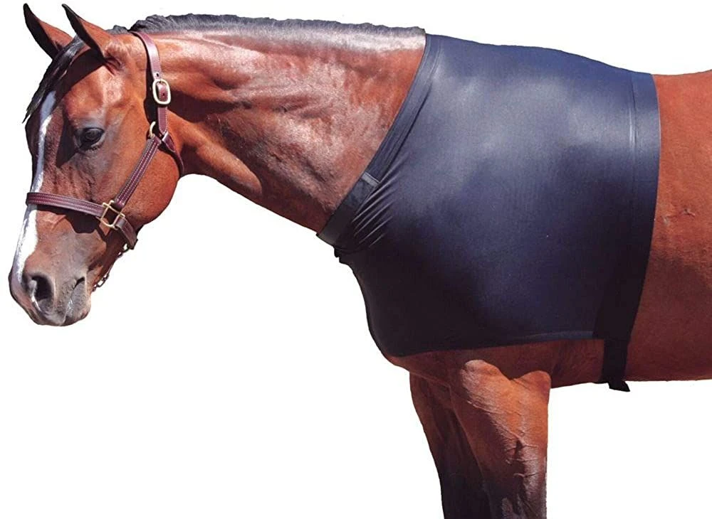 Made of four way stretch nylon/lycra and fitted with a durable velcro closure for an easy fit. This chest protector has been tailored to allow for a sleek and comfortable fit against your horse that will help to prevent blanket chaffing. Sizes: Pony (Small), Cob (Medium), Full (Large) or XL
