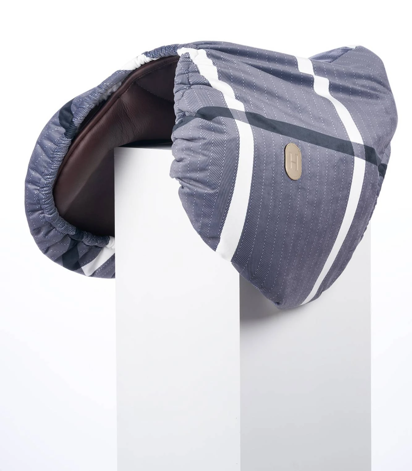 Hansen Equestrian saddle covers are available in both All Purpose and Dressage sizes. They are made from our signature velvet fabrics which are machine washable, beautiful to look at and strong enough to last many years around the barn. The covers are all lined with our signature lush Berber fleece that provides a cushion around your saddle protecting it from scrapes and scratches. The fleece also provides insulation that can help eliminate drying and cracking leather in cold temperatures and a moisture barrier in hot humid temperatures. Our saddle covers all have a very tight elastic to ensure a secure fit and allow for many different sizes and types of saddles to fit under them.