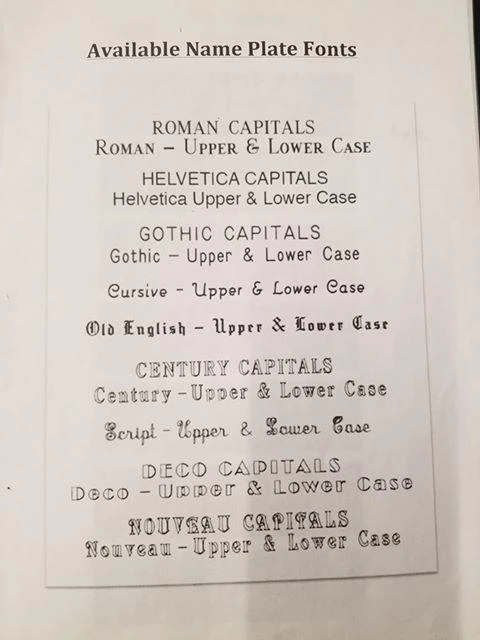 Please note, nameplate orders take approximately 3 weeks to arrive.