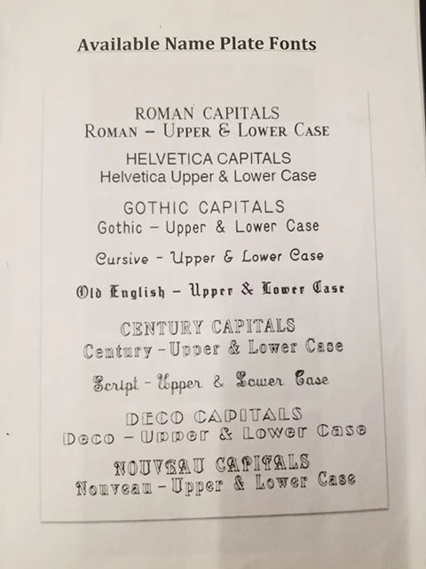 Please note, nameplate orders take approximately 3 weeks to arrive.